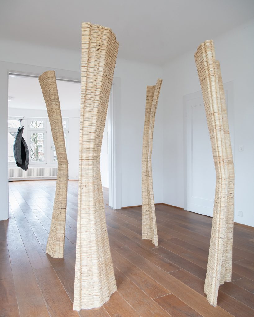 Seine Skulpturen sind nicht leicht zu vereinnahmen. Der Blick wird von dem Fluss des Materials mitgerissen. Es scheint kein Anfang und kein Ende zu geben. Anders als in der Formbildhauerei ist es dem Auge nicht möglich, die Gebilde auf einen Schlag zu überblicken oder auch einen Angelpunkt zu entdecken, von dem alles abgeleitet ist. In diesem offenen wahrnehmenden Erforschen realisiert sich selber etwas von dem Prozesshaften, dem seine Gebilde unterworfen sind, und das verleiht ihnen eine Lebendigkeit, die nicht so sehr an Gegenstände, sondern an Wesen denken lässt. Das Material in seinen changierenden Oberflächen, seinen Schichtungen und unvorhersehbaren Formentwicklungen fordert ein unverkrampftes Sehen ein. In seinem Verlauf wird erkennbar, durch welch aufwändige Prozesse sich die jeweiligen Skulpturen herausgeschält haben, die im Vergleich zu den Praktiken der Warenwelt ohnegleichen in dieser auf Effektivität gestellten Welt ist. Da Hutgens seine Gebilde ausschließlich im eigenen Atelier erarbeitet, ausschließlich dort seine Materialforschungen und -auferstehungen stattfinden lässt, ist sein eigener Körper in diesen Gebilden wie unsichtbar präsent, definiert damit aber auch für sie ein Maß, welches in der heutigen Dingproduktion der Warenwelt verlorengegangen ist. Dieses Maß in Verbindung mit dem gleichzeitigen Zu-Wort-Kommen-Lassen der Selbsterzeugung des Materials gibt seinen Gebilden eine implizite innere menschliche Lebendigkeit und das Gefühl für eine Erforschung dieser Lebendigkeit, für ihre Offenheit und für ihre Möglichkeiten, die hier nicht unbegrenzt, sondern eingebunden in ihr Umfeld sind.