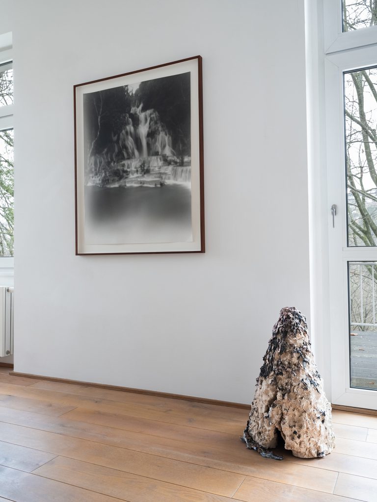 In der Frage, wie die Kunst unsere Aufmerksamkeit auf das Geschehen unserer Welt neu einstellen oder zu tieferen Reflektionen Anlass geben kann, sind auch andere Haltungen möglich. Statt die Produktionsleistungen aufs Elementare – wie in der Minimal Art – oder aufs total Ausgefeilte und Grelle zu lenken, kann sie im Bereich der Skulptur antreten, unser Materialitätsbewusstsein radikal neu zu befragen. Was verbirgt sich hinter fertigen, glänzenden Oberflächen? Sind solche Oberflächen nicht etwas völlig Scheinhaftes? Müssen wir nicht diese Oberflächen auf ihre Wahrhaftigkeit befragen, die Erstarrungen beiseite wischen und uns der dahinter verborgenen Kräfte, Energien und Prozesse bewusst werden? Und im Zuge dessen zugleich das unterschwellige Herrschaftsverhalten des Menschen gegenüber seiner Umwelt in diesen Prozessen freilegen und umlenken? Müssen wir nicht das sich dahinter verbergende Ideal der perfekten Kontrolle unserer Welt infrage stellen? Beide Gesichtspunkte, Urgründe von Materialität freizulegen und Kontrolle infrage zu stellen, treiben das bildhauerische Werk von Tristan Hutgens an. Hier ist nichts ein statisches, fertiges Ding, sondern alles wird aufs Prozesshafte umgelenkt, nichts fertig vorhergeplant, sondern alles auf Selbstfindung und -bildung ausgerichtet. Hutgens’ Atelier als Entstehungsort seiner skulpturalen Gebilde gleicht einer Hexenküche, in der es stark brodelt, heiße, giftig aussehende Dämpfe hochschlagen, Mixturen ineinanderwirbeln und das Erkalten oder Erhärten gar nicht absehbar scheint. Schicht um Schicht türmt sich auf und scheint sich in immer neuen Verschiebungen fortzubewegen. Die Regeln für diese Prozesse sind nicht von außen gedacht oder vorgegeben, sondern ergeben sich aus dem Materialfluss selbst und dem Staunen über die Vielfalt des Quellens. Hutgens lässt uns am Entstehen teilnehmen, weil er die Zustände seiner Gebilde so einrichtet, dass das Werden spürbar oder ablesbar ist. Die resultierende Form seiner skulpturalen Gebilde steht nie am Anfang, sondern immer am Ende seines bildhauerischen Einwirkens.
